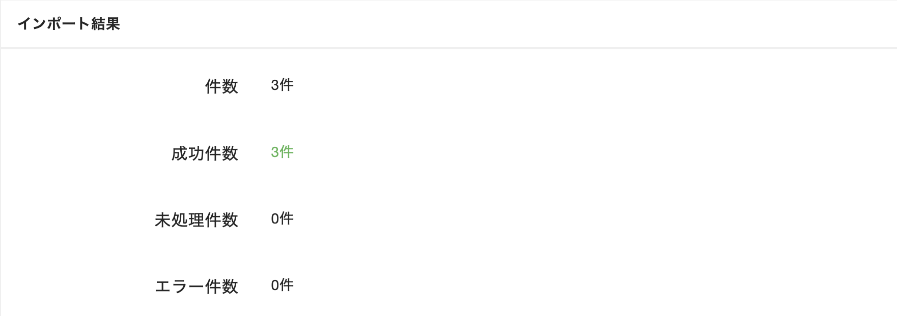 エラーの対処方法については、「CSVインポートでエラーが発生してしまった場合はどうすればよいですか?」を参考にしてください。