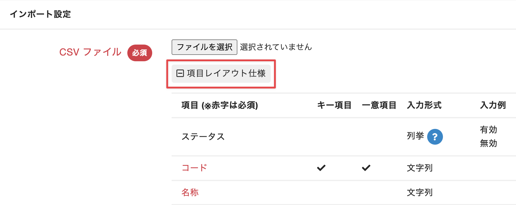 注意:インポートは、CSVファイルの入力情報に誤りがないかどうかを慎重にご確認のうえ実施をお願いいたします。