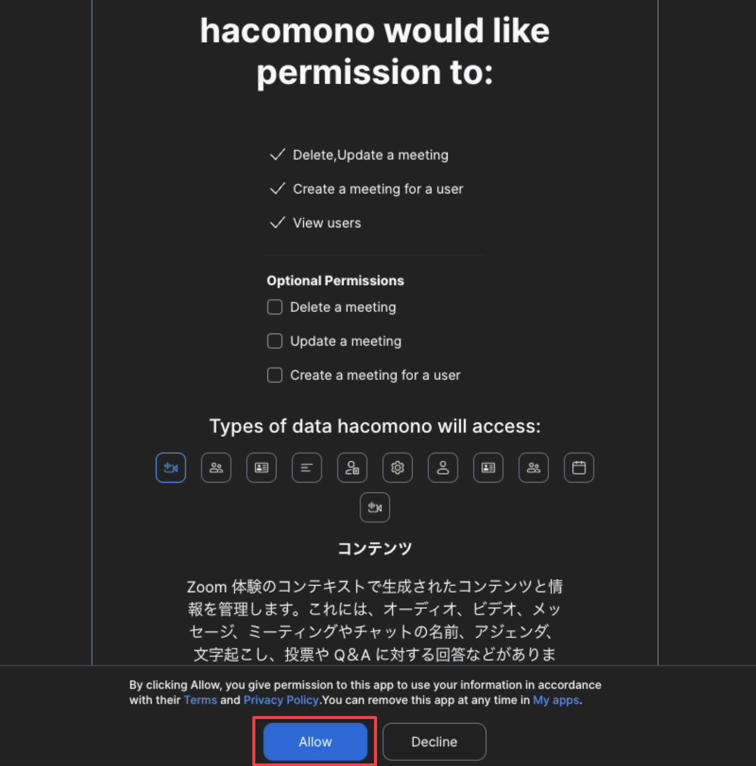 Zoomとhacomonoを連携する