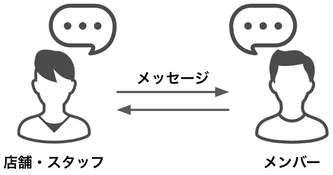 メッセージ機能は、店舗・スタッフと会員登録されているメンバーとの間で、双方向に直接やりとりできるコミュニケーションツールです。