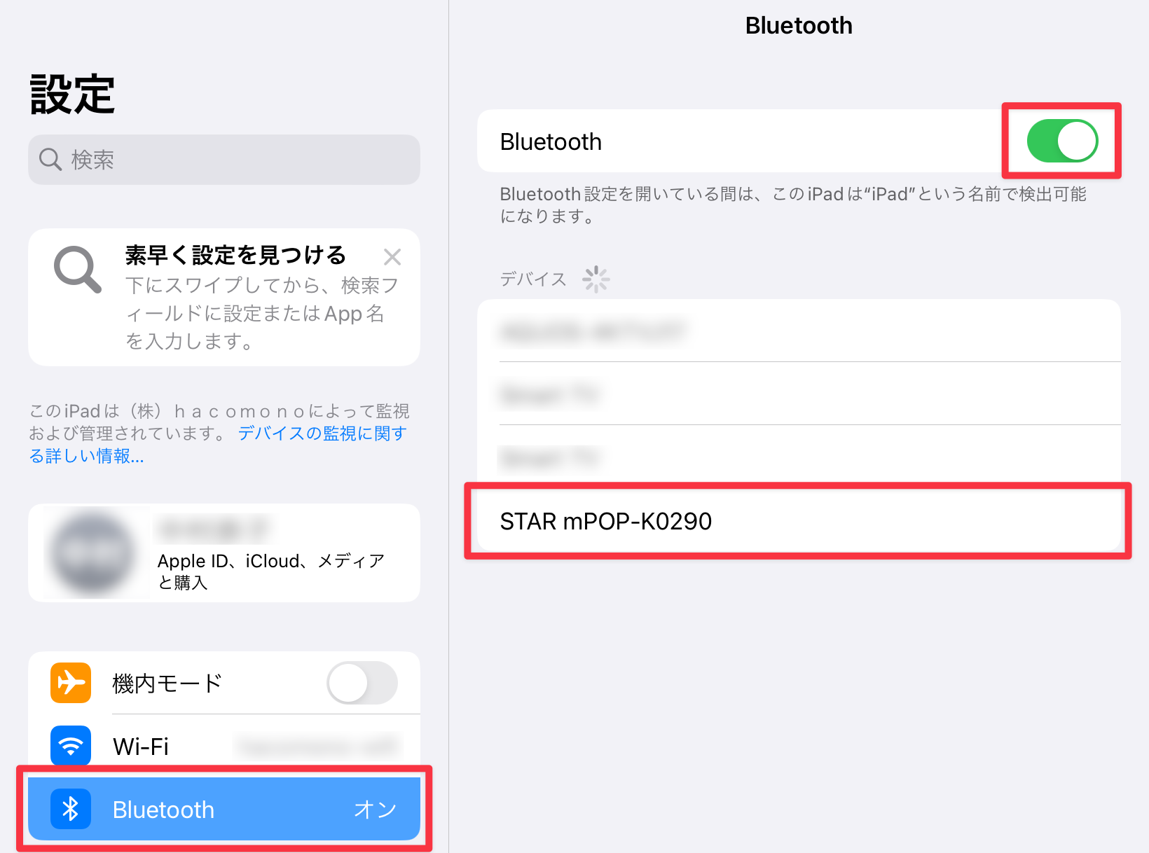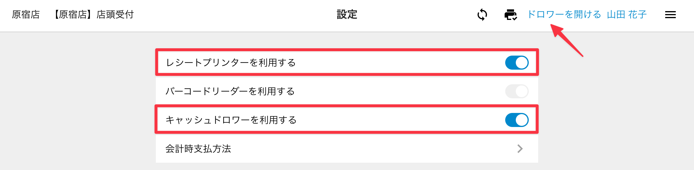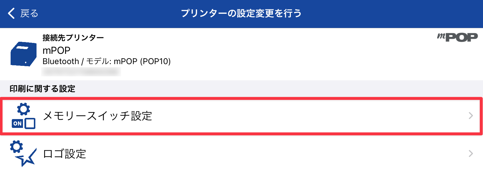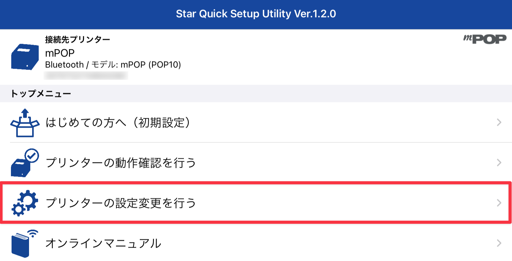 レシートプリンター・キャッシュドロワー一体型モデル(mPOP)を設定する