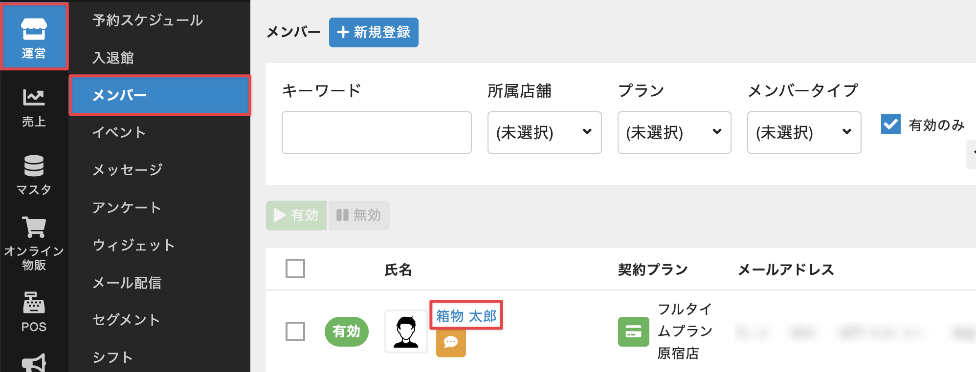 - 管理サイトのサイドバーから[運営]>[メンバー]を選択し、メンバーの一覧画面で対象のメンバーの氏名をクリックします。