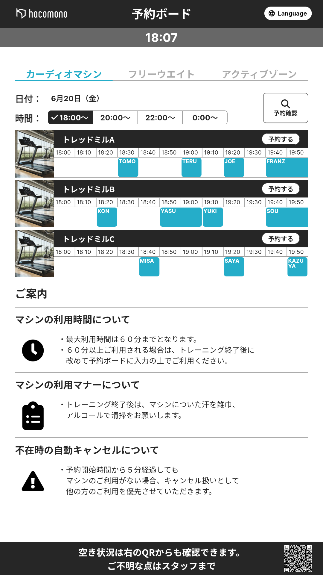予約ボードで予約の操作が開始されたときに、お客さま向けの注意事項やルールなどのメッセージ画面を表示するように設定できます。