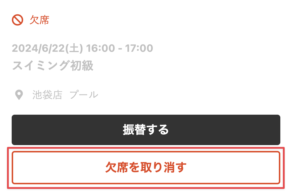 - 欠席を取り消すレッスンの[欠席を取り消す]をタップします。