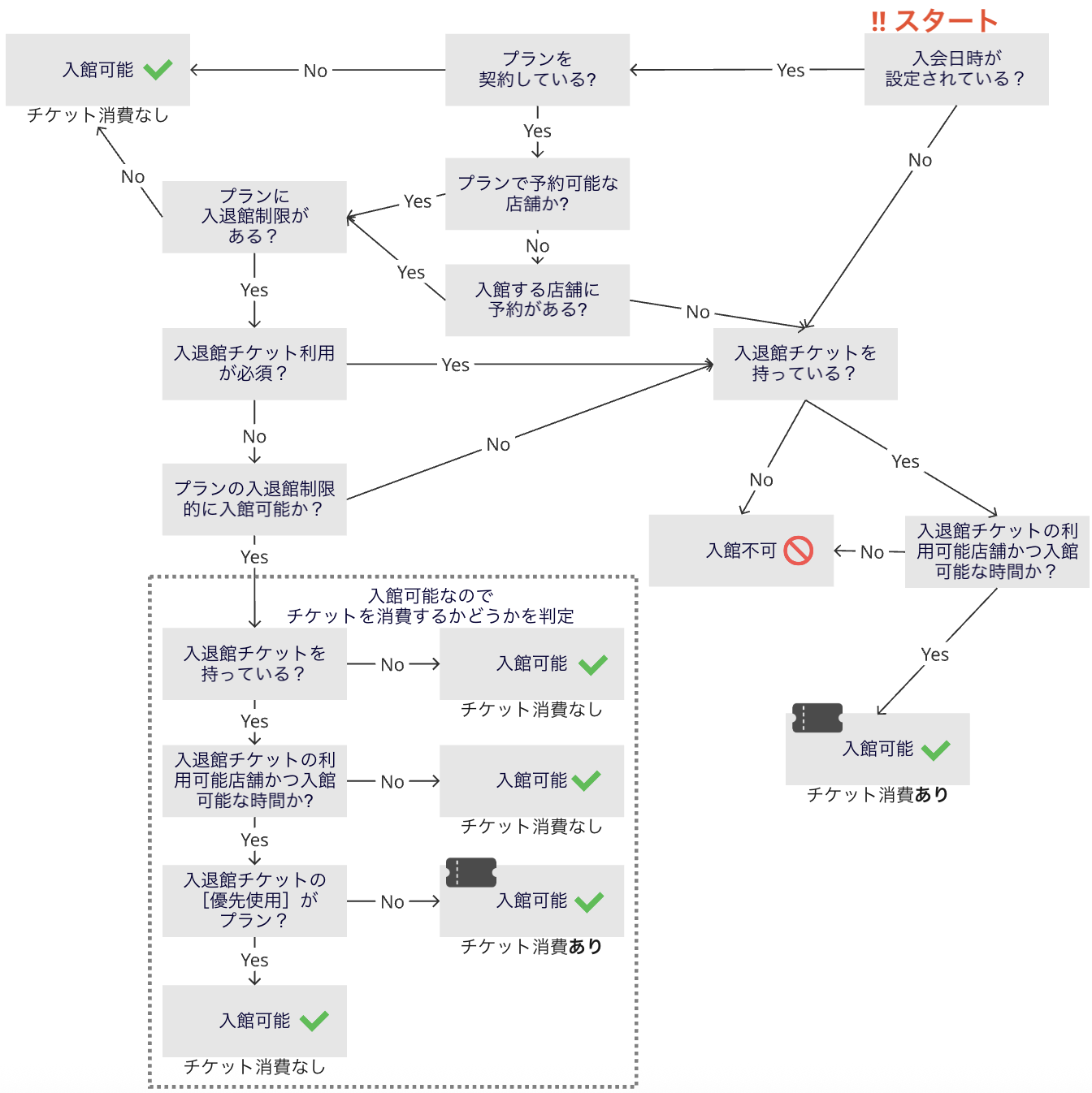 ロックQR・ロックワイヤレスで入館された場合、以下の流れで入館可能かが判定されます。