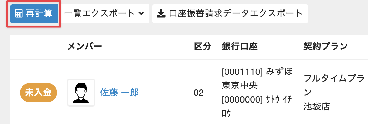 口座振替代行サービスへの請求データアップロード前口座振替画面で翌月分の請求データを再計算します(「毎月の口座振替請求データを作成する」を参照)