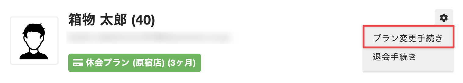 - 右上の歯車アイコンをクリックして、[プラン変更手続き]を選択します。