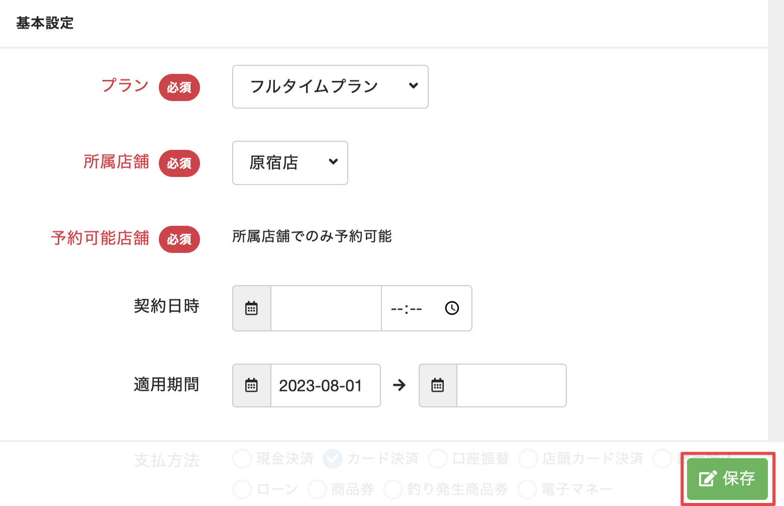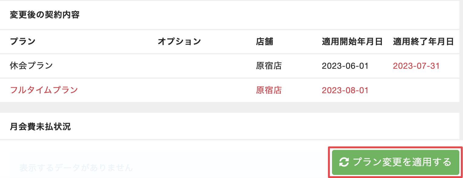 Note:プラン変更の締め切り日は、システム設定の[契約変更・退会の締切]で設定します(「全体設定を確認する」を参照)。