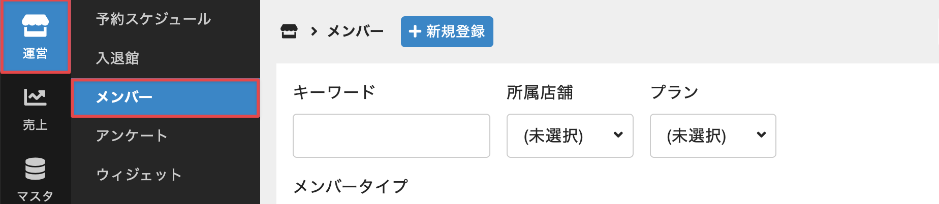 管理サイトのサイドバーから[運営]>[メンバー]を選択します。