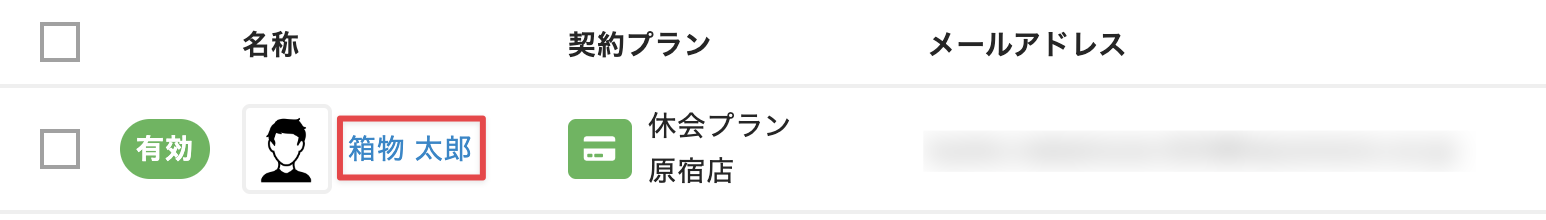 - [プラン]>[契約内容]タブを選択し、現在契約中の休会用のプラン名をクリックします。