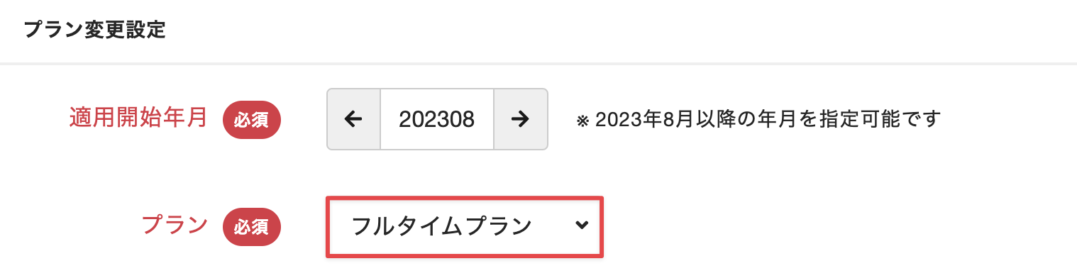 Note:[適用開始年月]の年月は、当月のプラン変更の締切日までは翌月以降を選択できます。締切日を過ぎている場合は翌々月以降を選択できます。