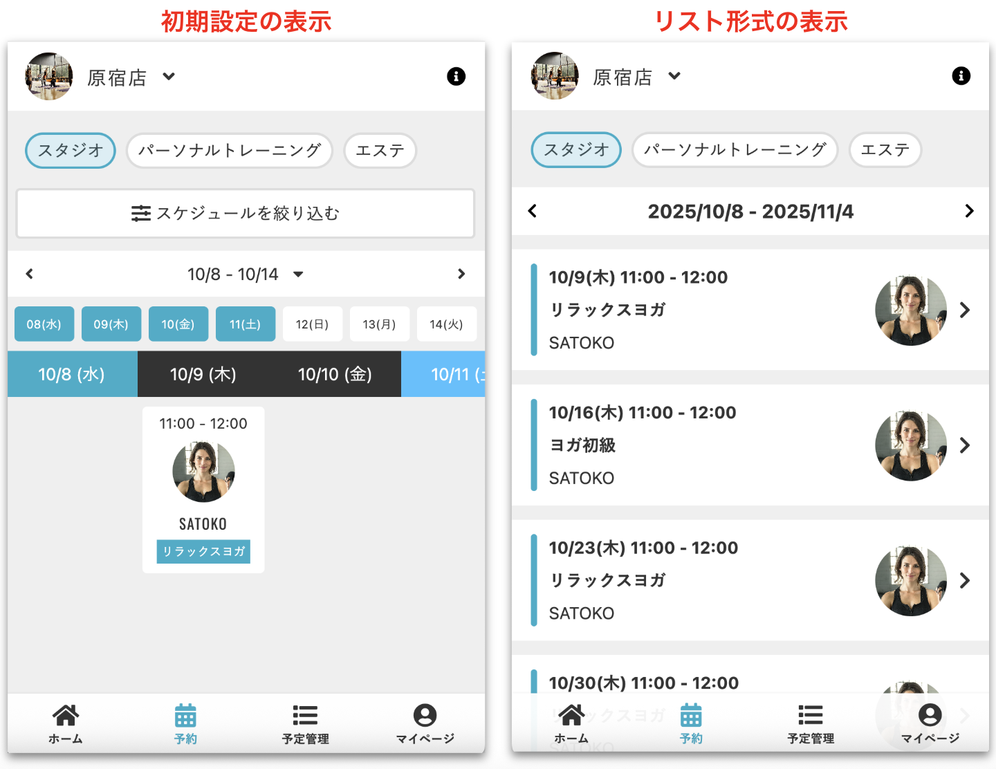 固定枠予約のレッスンのみリスト形式で表示できます。