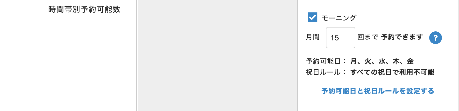 1ヶ月の予約回数を制限する場合、時間帯の入力欄に予約可能にする回数を入力します。