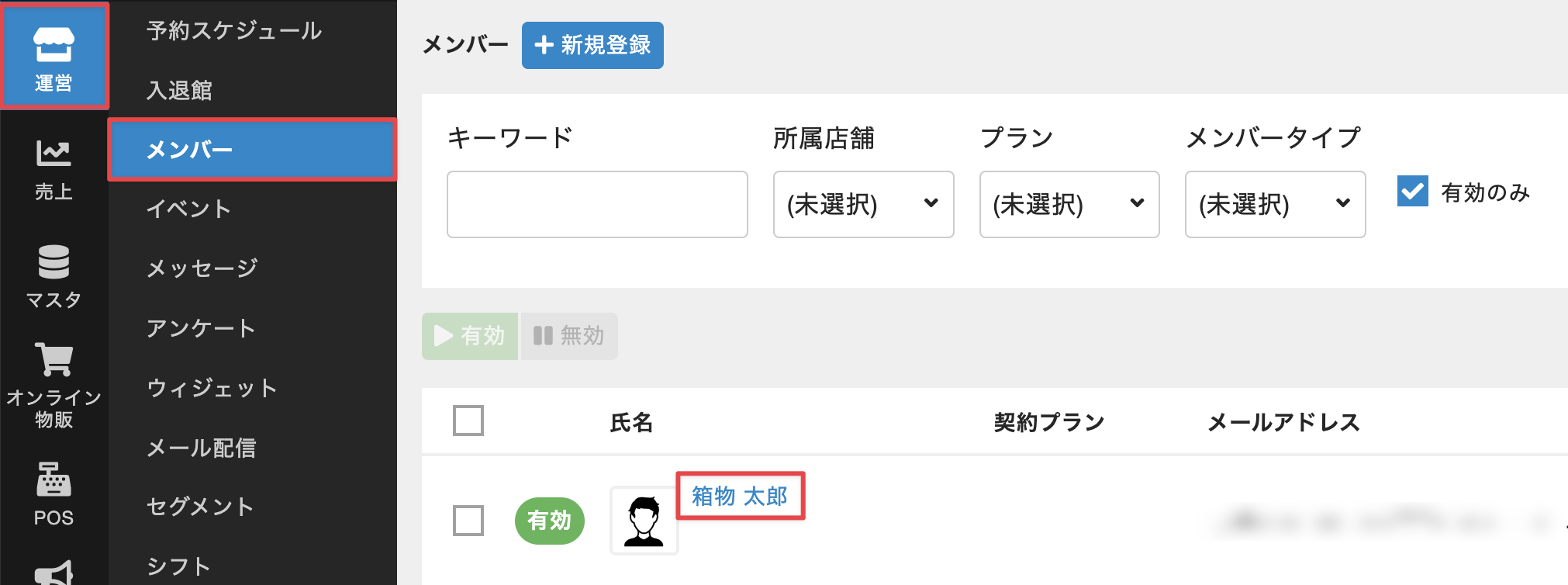 - 管理サイトのサイドバーから[運営]>[メンバー]を選択し、メンバーの一覧画面でメンバーの氏名をクリックします。