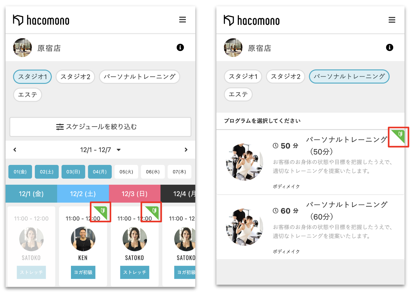 トライアルチケットは、トライアルの予約を受付可能に設定しているレッスン・プログラムだけで利用できます。メンバーサイトのトライアル予約が可能なレッスン・プログラムには、初心者マークのアイコンが表示されます。
