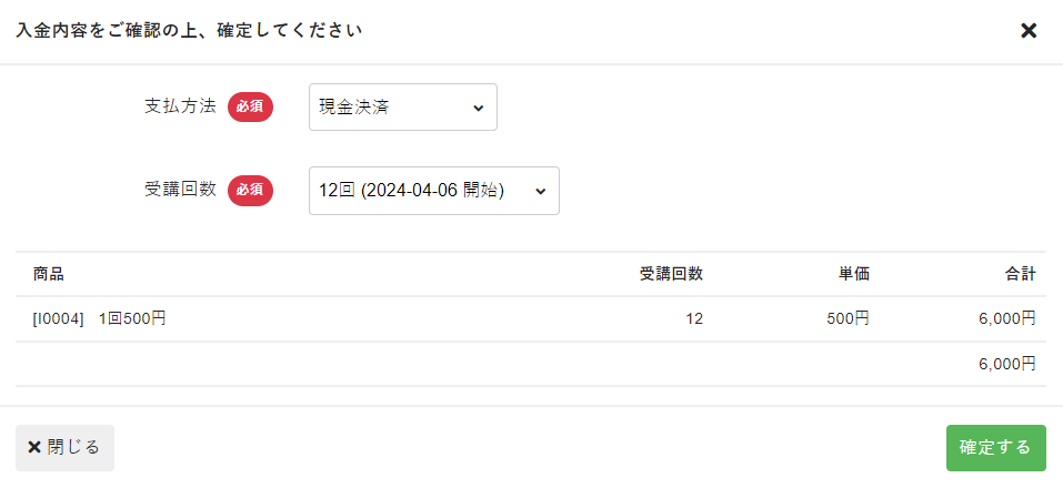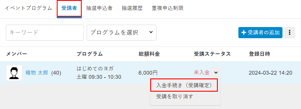 受講料の収受を管理する(イベント)