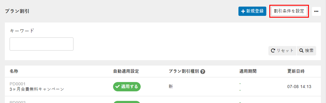 複数プラン割引の条件を設定する