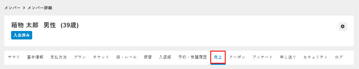 - 払い戻しが完了すると、該当のメンバーのメンバー詳細画面の[売上]タブに払い戻しの項目が追加されます。