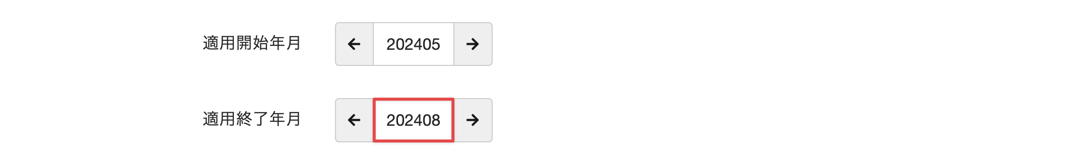 [適用終了年月]に、クラスを終了する年月を入力します。