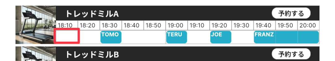 - 予約の時間がタイムラインに表示されていない場合、[時間]で予約の時間帯をタップします。