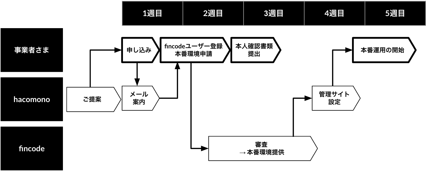 - メール案内:fincodeのユーザー登録のご案内メールが、hacomonoからメールで届きます。