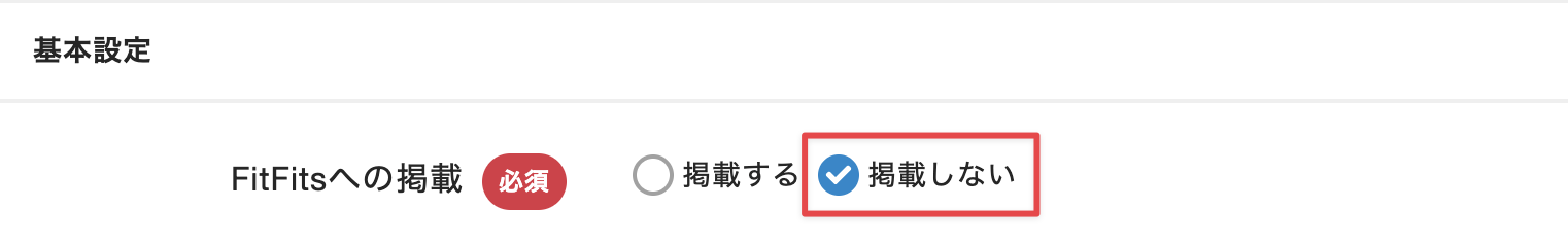 [FitFits掲載設定]で、[FitFitsへの掲載]から[掲載しない]を選択します。