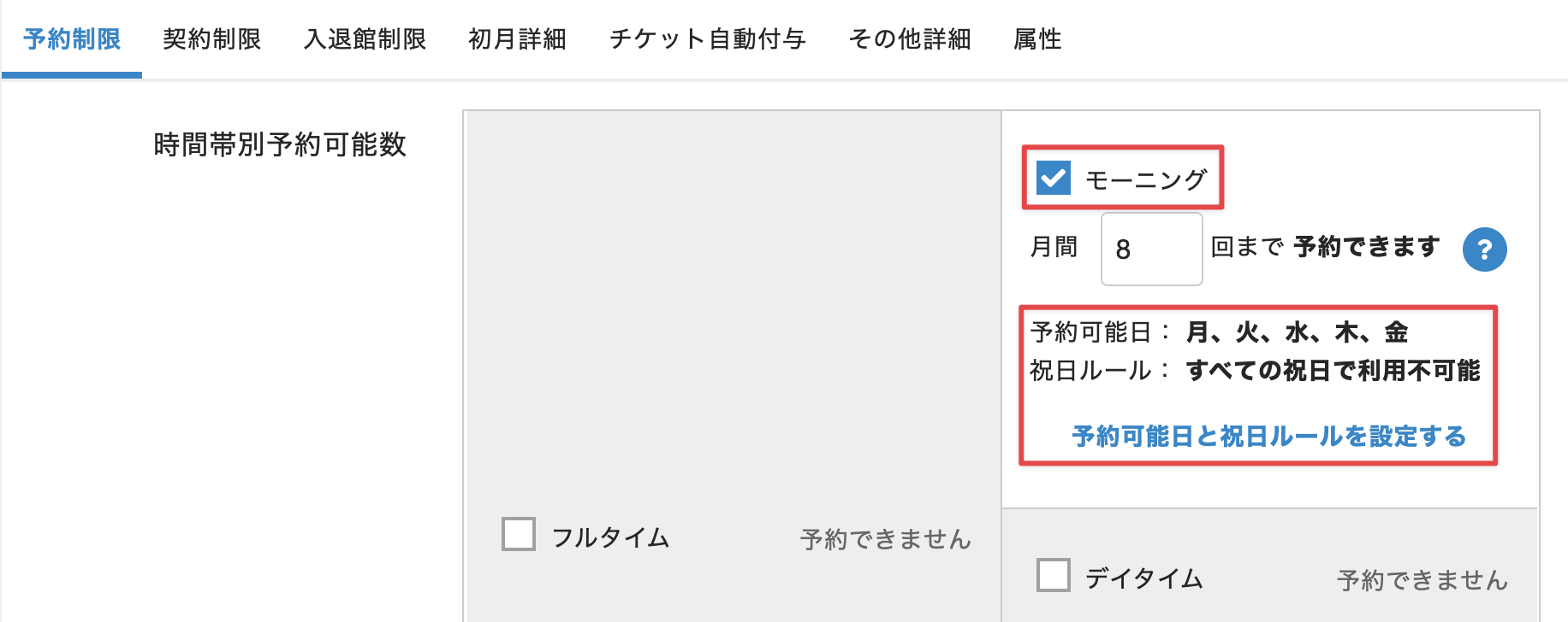 ※[契約しているプランで予約可能な曜日・時間帯のみ入館可能]にチェックを入れている前提です。
