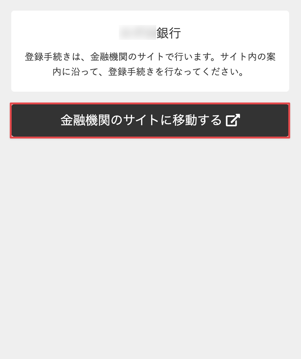 [口座名義人]は個人の口座のみ登録できます。法人名義の口座は登録できません。 - 各金融機関のサイトに移動して口座振替支払いの手続きを行うために、[金融機関のサイトに移動する]をタップします。引き続き、画面の案内に従って手続きを行います。