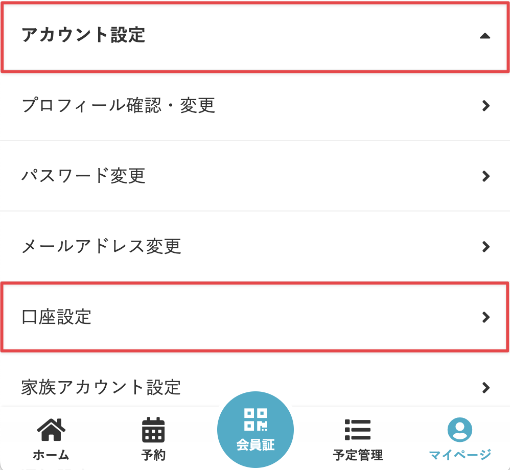 [アカウント設定]>[口座設定]をタップします。