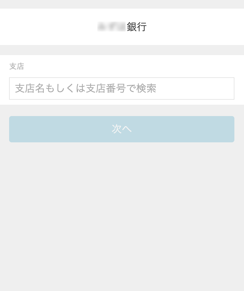 https://docs.mul-pay.jp/accounttrans/entry/online/banklist - 支店についての検索のテキストボックスが表示された場合、検索のテキストボックスに支店名または支店番号を入力して一覧に検索結果を表示します。該当の支店を選択し、[次へ]をタップします。
