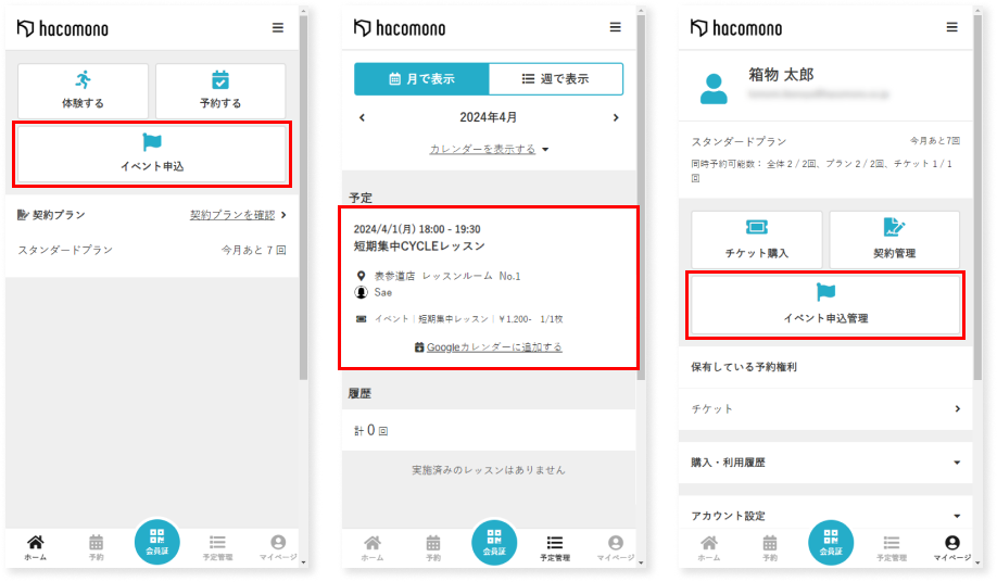 - メンバー:hacomono上で受講者や申込者を示すUI