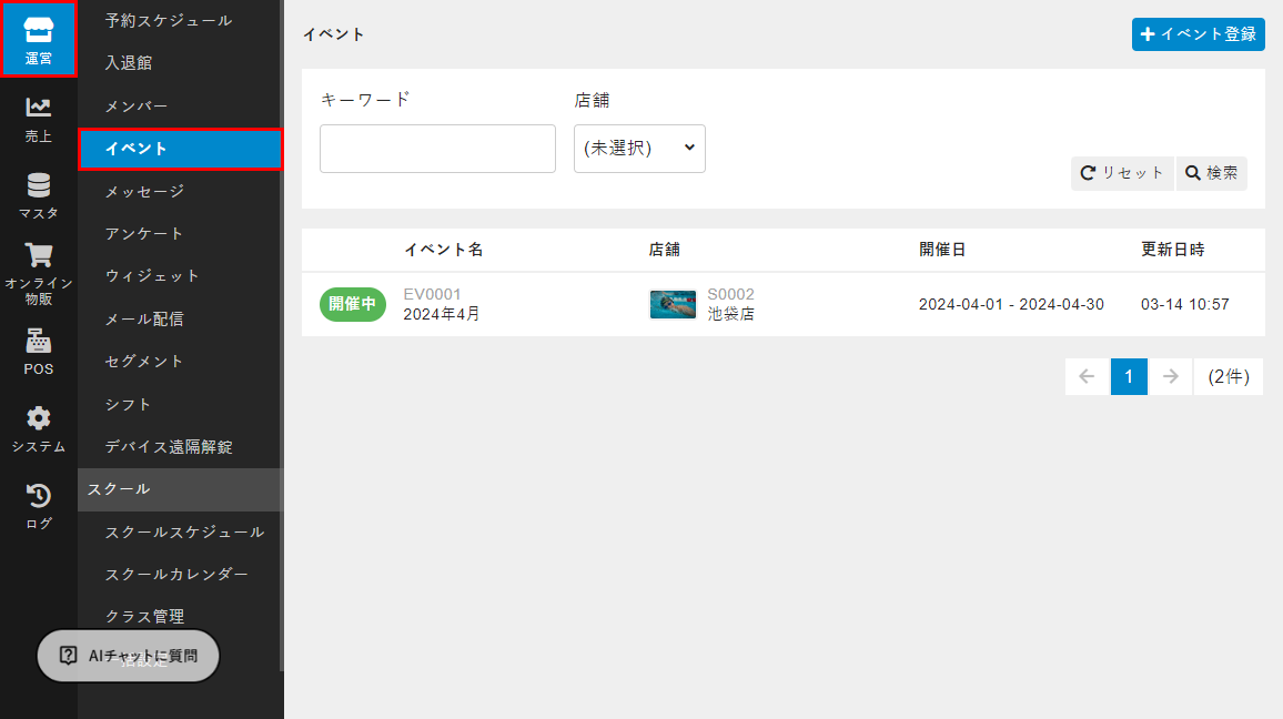 注意:ご契約にイベント機能が含まれている場合にご利用になれます。