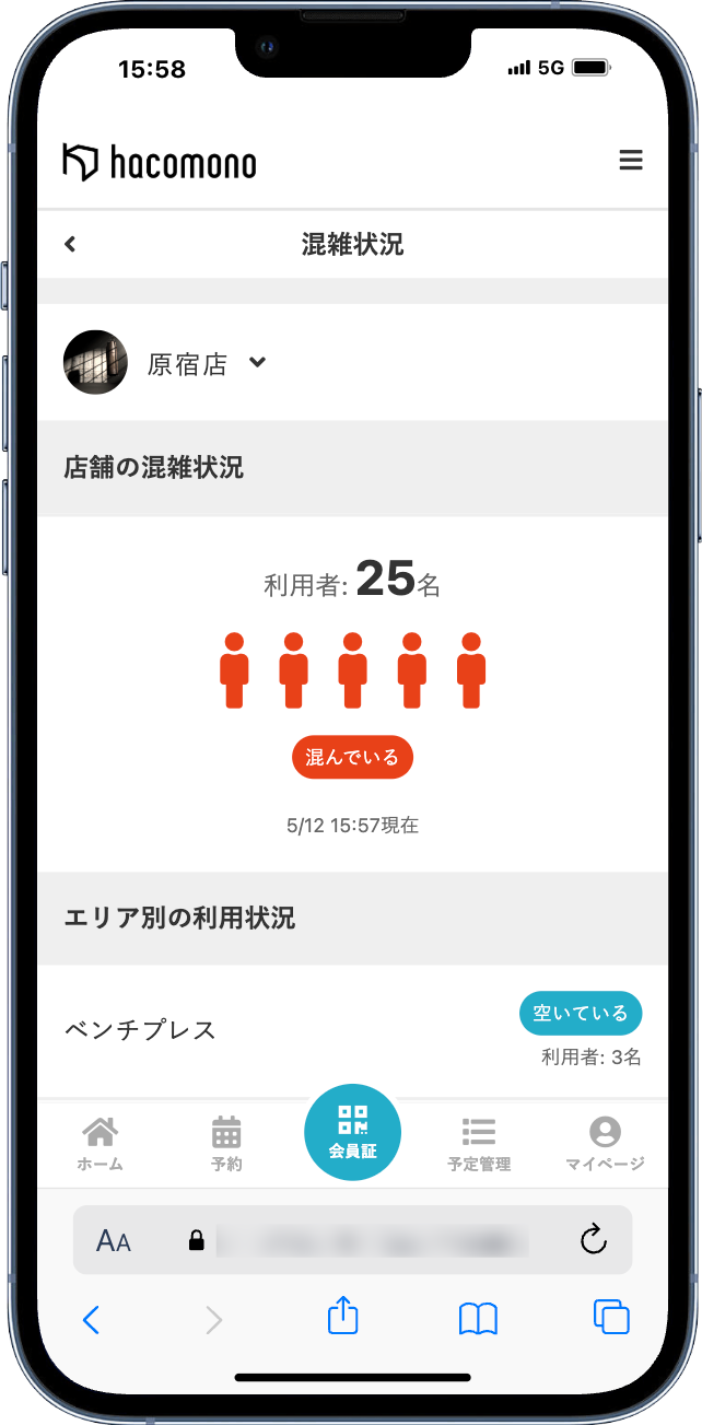 AIカメラは人の検知と人数の計測が可能です。計測された人数データを利用して、店舗全体や特定エリアの人数を混雑状況としてメンバーサイトに公開できます。また人数データをエクスポートし、店舗運営の改善などをデータに基づき検討することもできます。