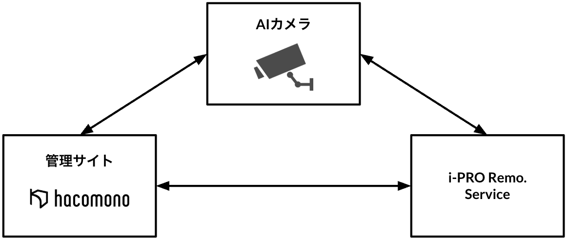 i-PRO株式会社が提供するi-PRO Remo. Serviceと連携し、AIカメラの映像確認や画像解析などを行うことができます。i-PRO Remo. Serviceへは、hacomonoの管理サイトからシングルサインオンでアクセスできます。