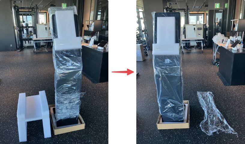 - 緩衝材と本体下部のフィルムを外します。