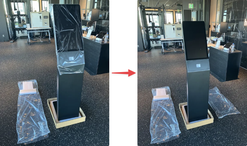 - 予約ボード本体の袋とモニターのフィルムを外します。