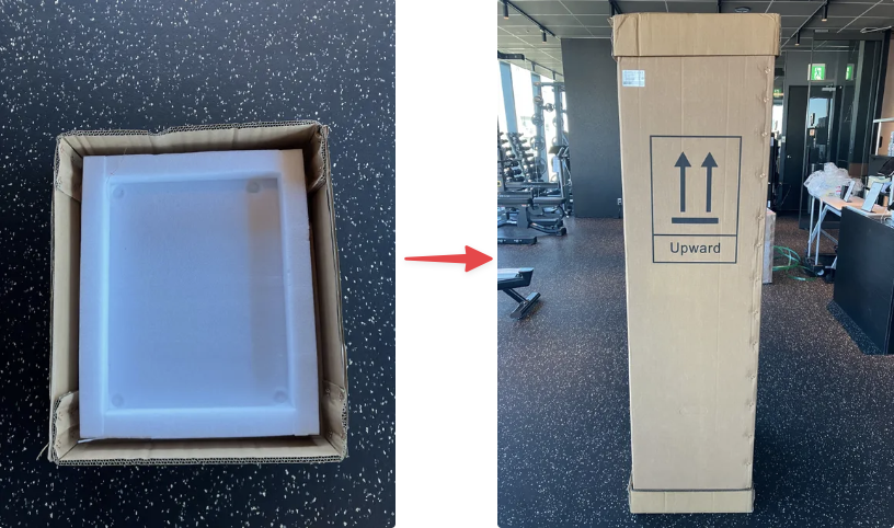 - 予約ボードの底部に付いている箱を外し、緩衝材や本体の袋などを箱の中にしまって、右図のような状態で保管してください。