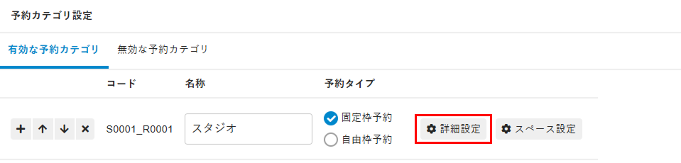 [店舗設定]タブの[予約カテゴリ設定]で、メンバーサイトに非公開にする予約カテゴリの[詳細設定]をクリックします。
