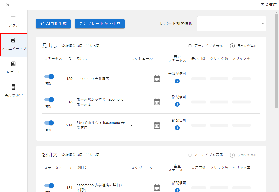 ワンクリックオリコミ機能のクリエイティブを設定する