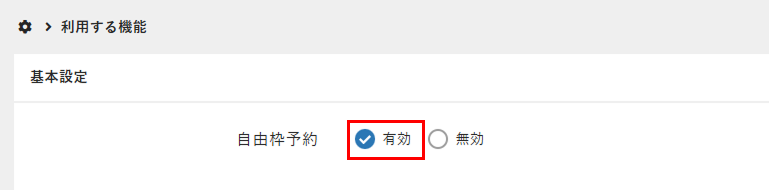 [基本設定]の[自由枠予約]で[有効]を選択します。
