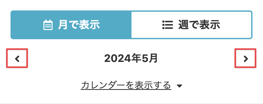 [<]や[>]をタップして、欠席手続きしているレッスンの月に移動します。