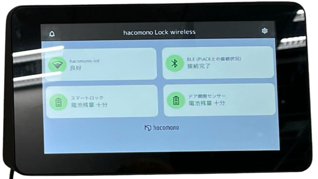 注意:デバイスマスタの[入館認証方法]に[ロックワイヤレス]が設定されているデバイスだけ、hacomono Gatewayの画面に表示され、アクティベーションすることができます。Note:設定を中断する場合は、電源を入れた状態でそのまま置いておきます。設定を再開するには、画面をタップしてスリープ状態から復帰させます。中断前の状態が保持されているため、続きから設定を再開することができます。 - hacomono Gatewayを再起動します。