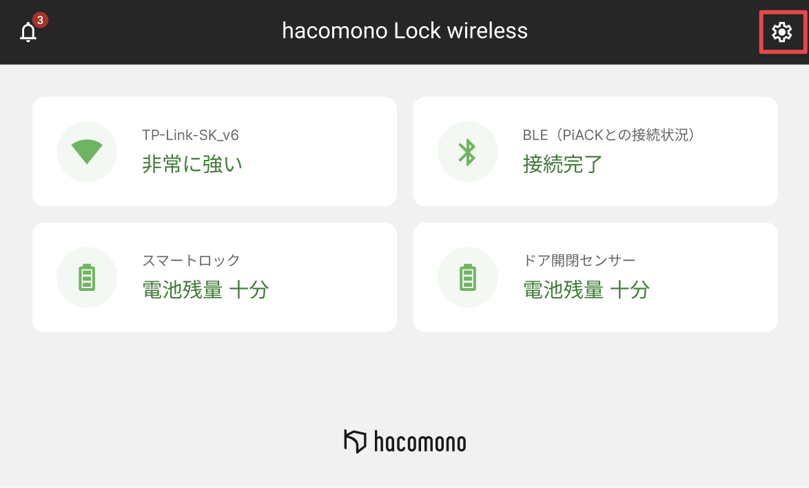 - hacomono Gatewayの画面をタップしてスリープ状態から復帰させます。